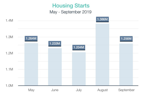Overall Housing Starts fell 9% in September from August's 12-year high to an annual rate of 1,256,000 units versus the 1,306,000 units expected. Year-over-year total Housing Starts rose 1.6%. However, the silver lining within the data showed that single-family home construction, which makes up the bulk of the housing market, increased for the fourth straight month and the 918,000 annualized units in September was the best since January. Single-family starts were up 4.3% annually. Multi-family dwelling construction plunged 28% from August, down 5.8% year-over-year. The housing sector is being supported by historically low mortgage rates.